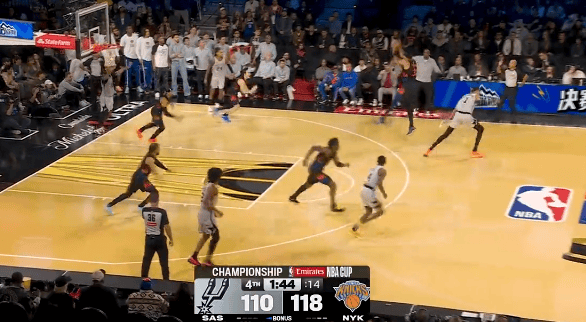 虎撲12月17日訊 NBA杯決賽,尼克斯對陣馬刺的封蓋比賽正在進行中。